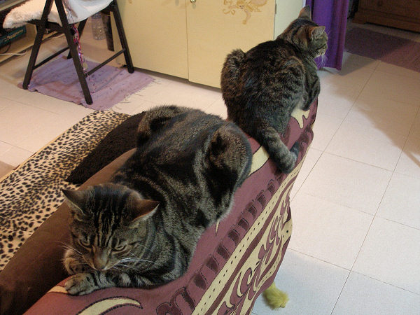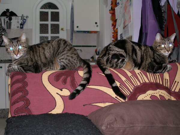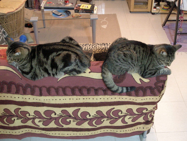 A few pics from a couple of years ago of Lugosi & Spider, doing their best Kitty Bookends impression.