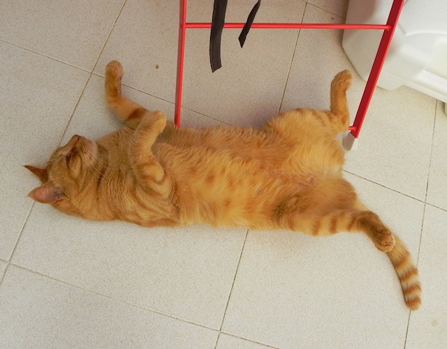 At 37C Degrees heat today, a kitty has to find a way to keep cool.