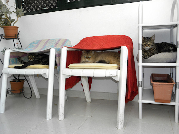 The beach is only 15 mins away, but these 3 prefer to stay on their balcony, just chillin….