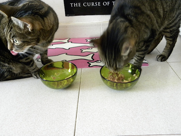 Mummy loves you lots!  Even though Lugosi is on a lifelong special diet for his feline urinary syndrome, on this special day he is allowed a small tin of tuna.  Mwah, my babies. 🙂
