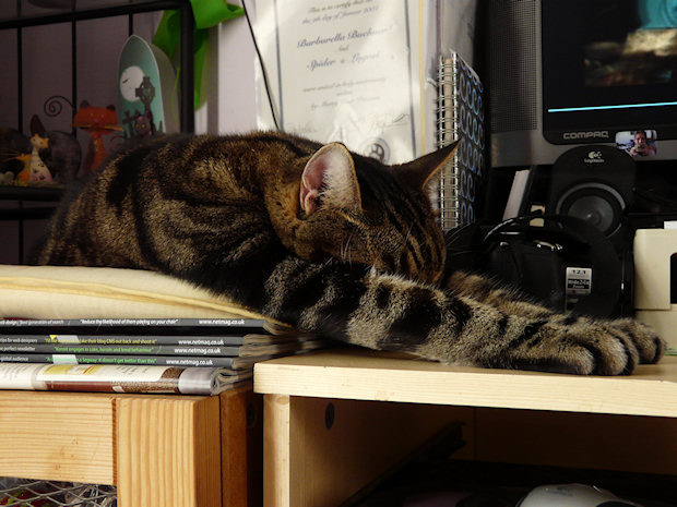Lugosi with his beautiful tiger feet stretched out in front, snoozing….