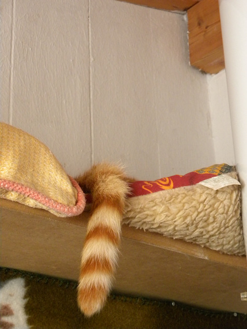 Silly, fuzzy pic!  Tail looks like a candy cane… 🙂