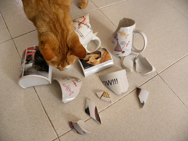 Last night at around 1am I heard a great big crash whallop bang in the kitchen and found that naughty little Ruby had had a run in with some of my mugs…. she broke not 1, not 2 but THREE of my beautiful mugs, two of them customised ones that I had designed myself… 🙁