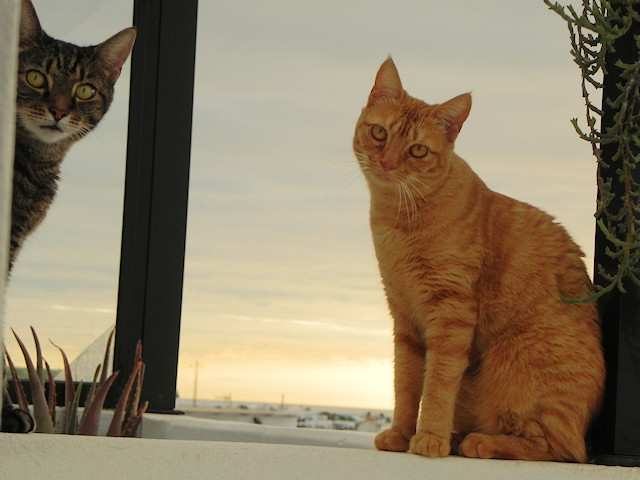 Ruby & Spider watching me at the bedroom window from the balcony…