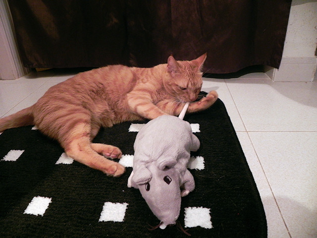 Got this rat plushie at IKEA today, laced it with catnip… and voilà! 😀