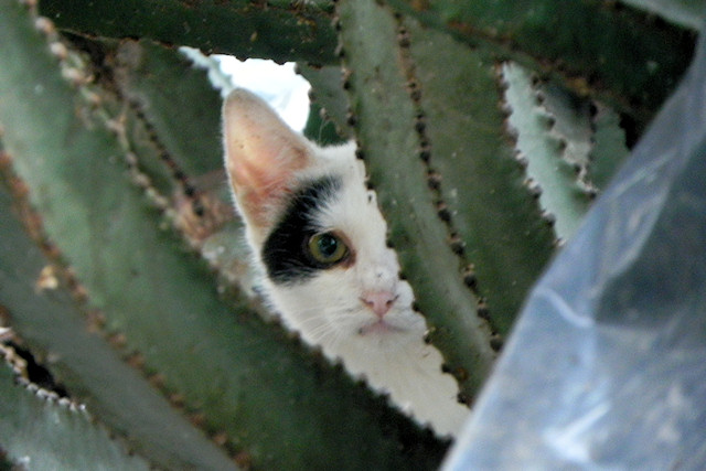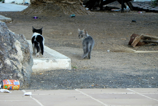 Another post of some of the feral kitties on abandoned, derelict apartment complex “La Perla” in Puerto del Carmen – the kittens are quite sad looking and all have bad eyes. 🙁