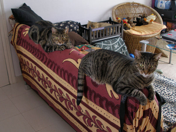 Lugosi Bully Boy and overall Boss Cat. Likes: Fighting. Dislikes: Car Journeys. Ruby Little Orange Spitfire Likes: Wrestling with her Brothers, Food, Playing. Dislikes: Being told off for being naughty. Spider Mischief Maker Extraordinaire. Likes: Getting in Trouble. Dislikes: The Vacuum Cleaner. Lugosi, Spider & Ruby – “Haus von Fluffenstein” – Videos Videos of Janelle too (who now lives happily with a good friend) [back to top]