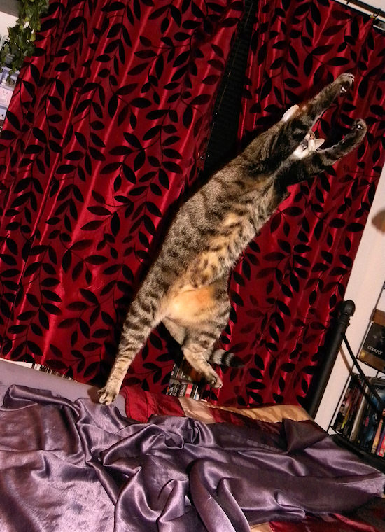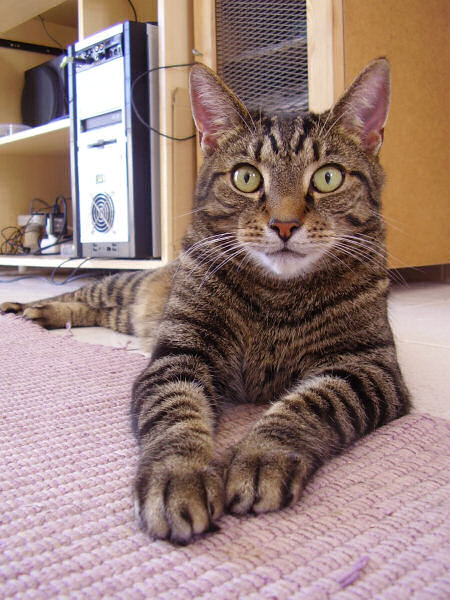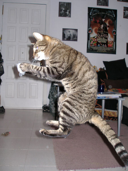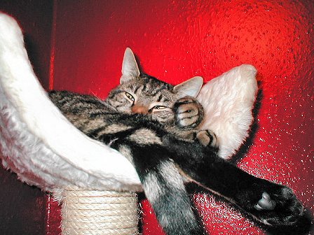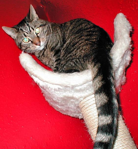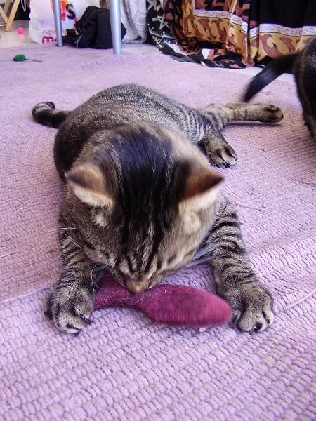 Lugosi Bully Boy and overall Boss Cat. Likes: Fighting. Dislikes: Car Journeys. Ruby Little Orange Spitfire Likes: Wrestling with her Brothers, Food, Playing. Dislikes: Being told off for being naughty. Spider Mischief Maker Extraordinaire. Likes: Getting in Trouble. Dislikes: The Vacuum Cleaner. Lugosi, Spider & Ruby – “Haus von Fluffenstein” – Videos Videos of Janelle too (who now lives happily with a good friend) [back to top]